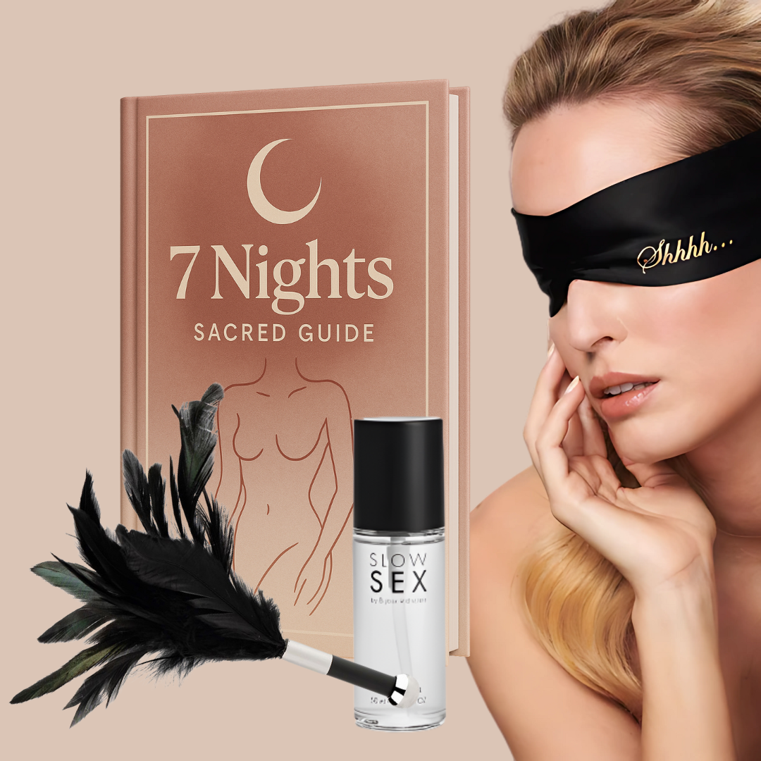 Awaken your senses with the Intimate Awakening Bundle - a curated set for more intimacy, play, and connection. With silky massage oil, a feather tickler, satin blindfold, and a digital 7-night guide. It has everything you need for a sensual journey together.
