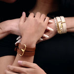 Elegant and versatile, the ICON Cuffs by Crave blend luxurious jewelry with discreet restraint. Crafted from genuine leather and stainless steel, these adjustable cuffs invite you to wear your desires — in private or in plain sight.