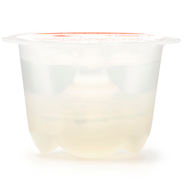 De Petit zit in een soort kleine geleipotje. Haal het deksel eraf, kantel het om het overtollige water eruit te laten lopen, knijp en de Petit springt er eenvoudig uit.